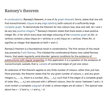 ** Btw, Ramsey Theorem is my favor one. "Absolute Disorder Is Nonexistent." - BUT, HERE I WANT TO SAY - "Absolute Cognition Of Human Kind Is Nonexistent." As my tweets wrote weeks ago, How Its End Depends How Its Start.