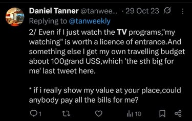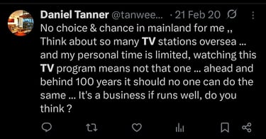 Now I barely watch local TV Live programmes, for showing my goodwill, except World Cup etc. (Normally I watch the Recorded TV News)