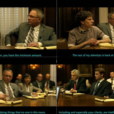 As a famous movie line goes - "You have part of my attention. You have the minimum amount. The rest of my attention is back at the offices of theFacebook, where my colleagues and I are doing things that no one in this room, including and especially your clients, are intellectually or creatively capable of doing."
