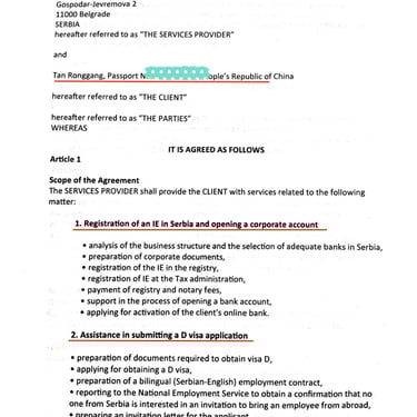 ** NOTE, in fact I personally think that the reason for my D visa application is very obvious. I have current business dealings with the agency, especially I am definitely not here to apply for a long-term visa to work secretly. I signed a contract with the agency to apply for a long-term residence visa and have paid a large amount of relevant fees. Is it reasonable to issue an "Invitation Letter" in the name of your agency to apply for a D visa? Is there a big risk? Is there a big risk for your company? I know that the locals have a way of guarantee fee for this kind cases (to find a strong and qualified enterprise or company), which is about 30,000dinars per month, less than 300eus. It is said that with this guarantee, it is also very easy to pass the D Visa. It may only take 1 month a year ago, and now they say it only takes 3 months at most. This fee should be fully included in my package payment. After all, the price I saw online was 2900eus, and 1000eus was added when signing the contract.